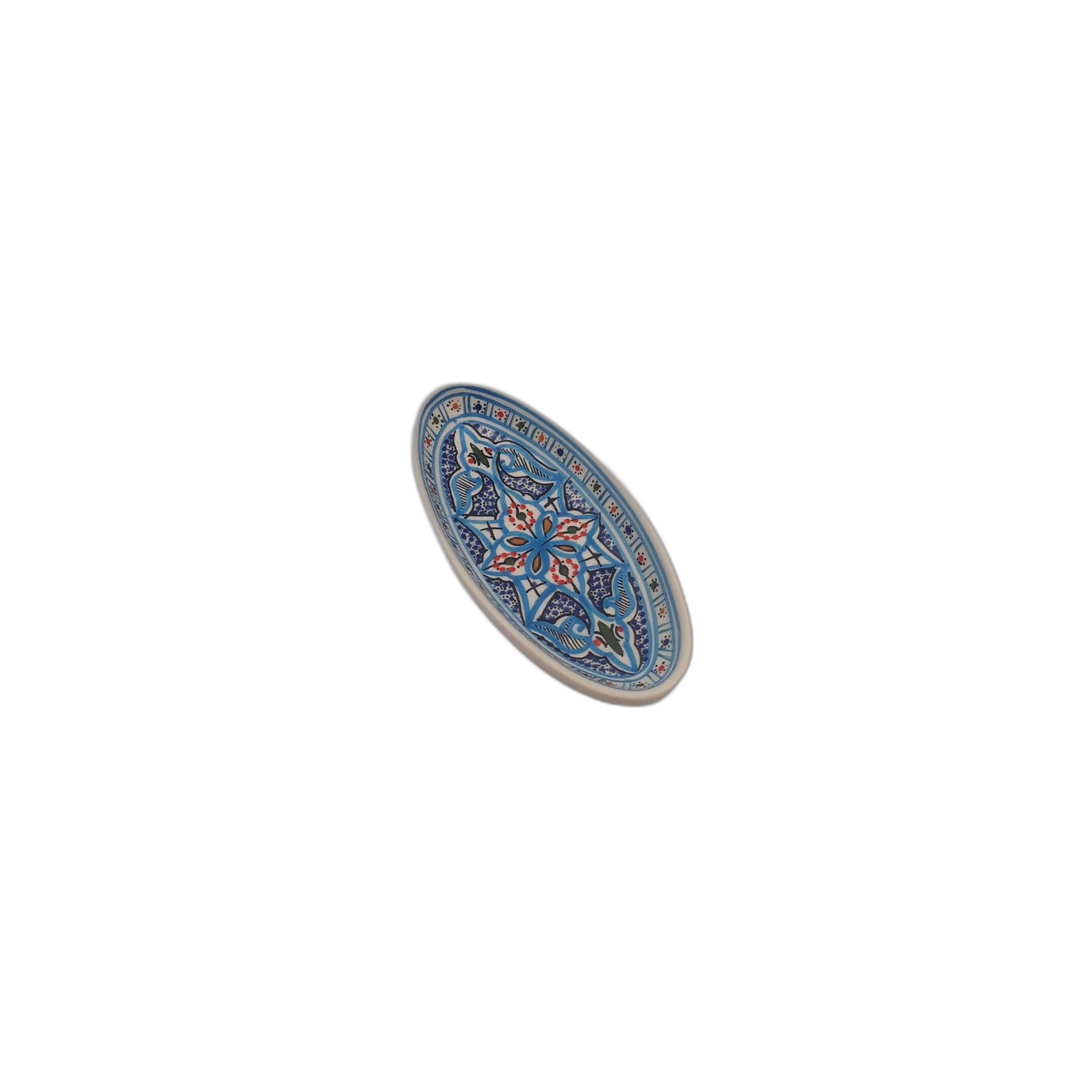 Plat de service ovale au décor turquoise 20 cm, parfait pour apéritifs et portions individuelles. Céramique alimentaire sans plomb, facile à nettoyer.